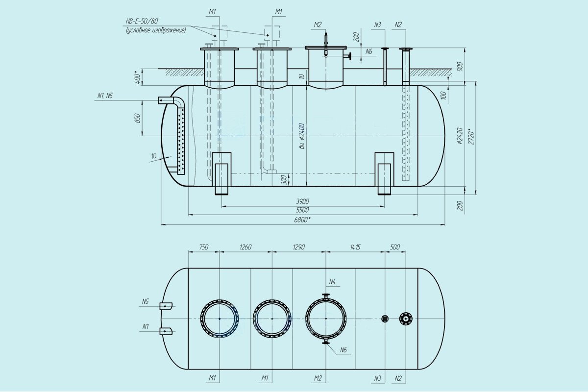Чертеж Емкость подземная ЕП-25, ЕПП-25